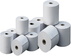 Rollos de papel para puntos de venta en papel térmico, bond y químico.